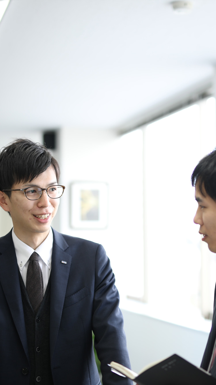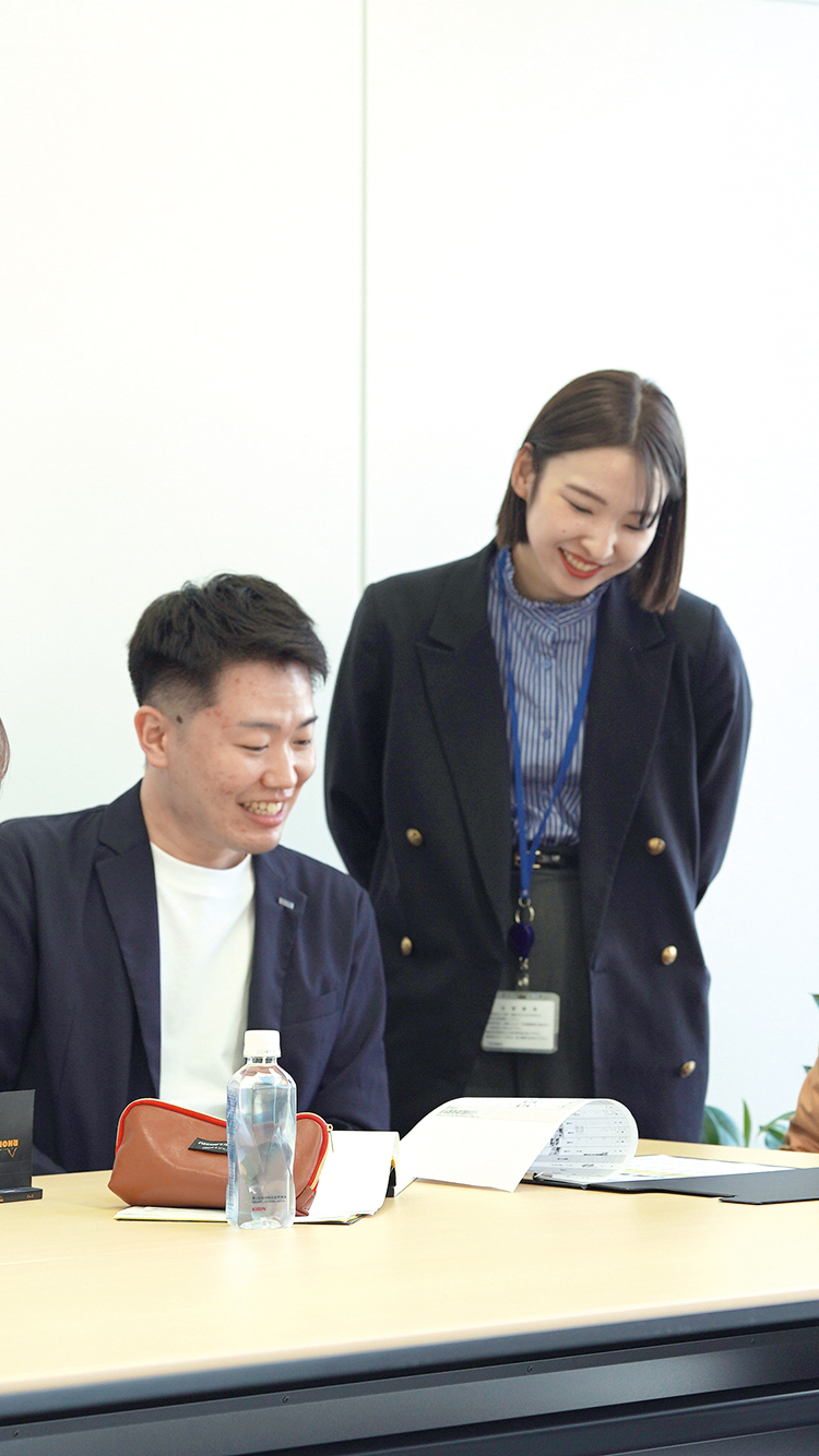 社内の平均年齢が33.2歳と若い世代が活躍する会社だからこそ、先輩スタッフとのOJT期間は約1年間と長く、専門的なスキルを段階的に習得していくことが可能です。ビジネスマナーや半年間の業界・商品知識研修、先輩スタッフの同行など、未経験から一人前にお仕事ができるように長期的な社内教育をすべての職種で実施しています。